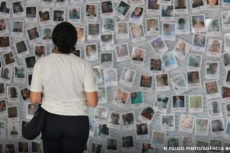 Sentadas no chão da Avenida Paulista, em São Paulo, crianças vão amassando…