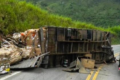 Itabira à Nova Era, carroceria desprende de chassi de caminhão e derruba carga na MGC-120