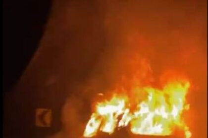 Um ônibus foi completamente destruído por um incêndio na noite de domingo…