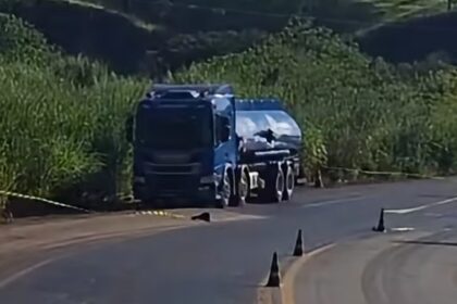 Caminhão tanque é atingido na lateral e derrama mais 10 mil litros de combustíveis na MG-434