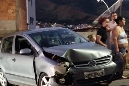Carro bate em poste e muro após motorista perder controle no bairro Lucília em João Monlevade