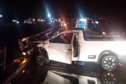 Caminhonete bate em mureta após motorista perder de controle do veículo em Nova Era
