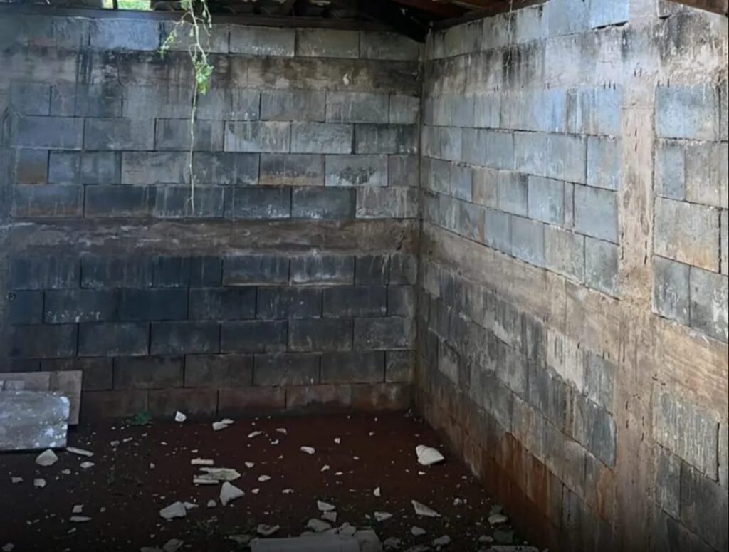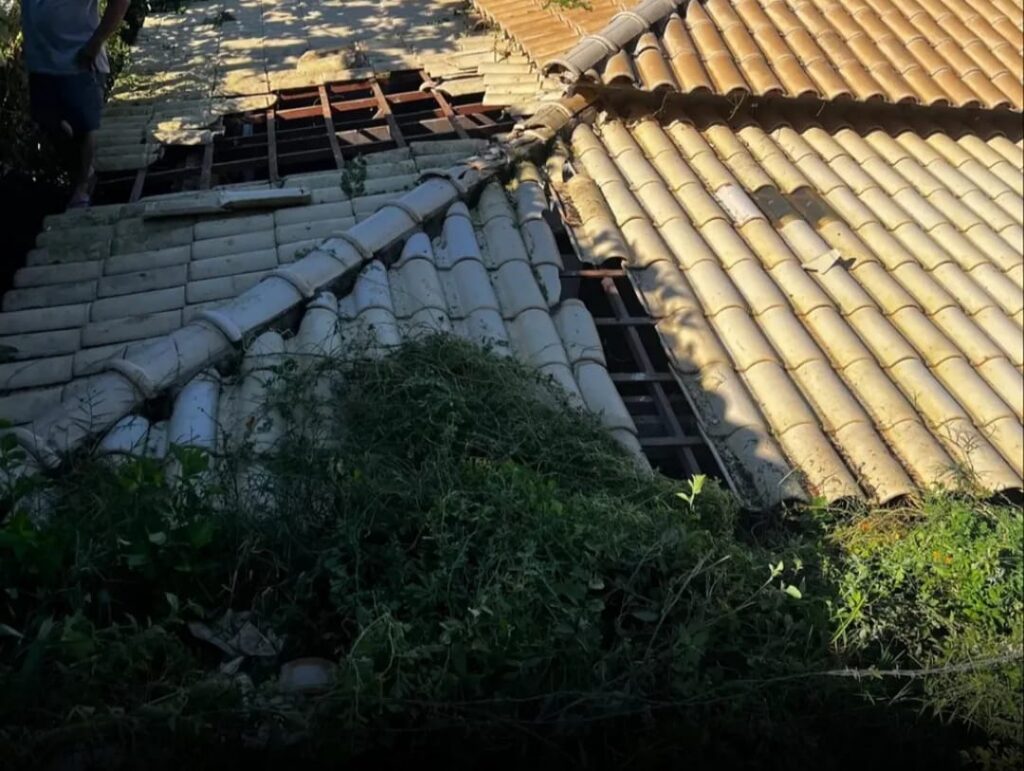 Com o desabamento parcial, o boi caiu na lateral do imóvel e ficou impossibilitado de sair sozinho.