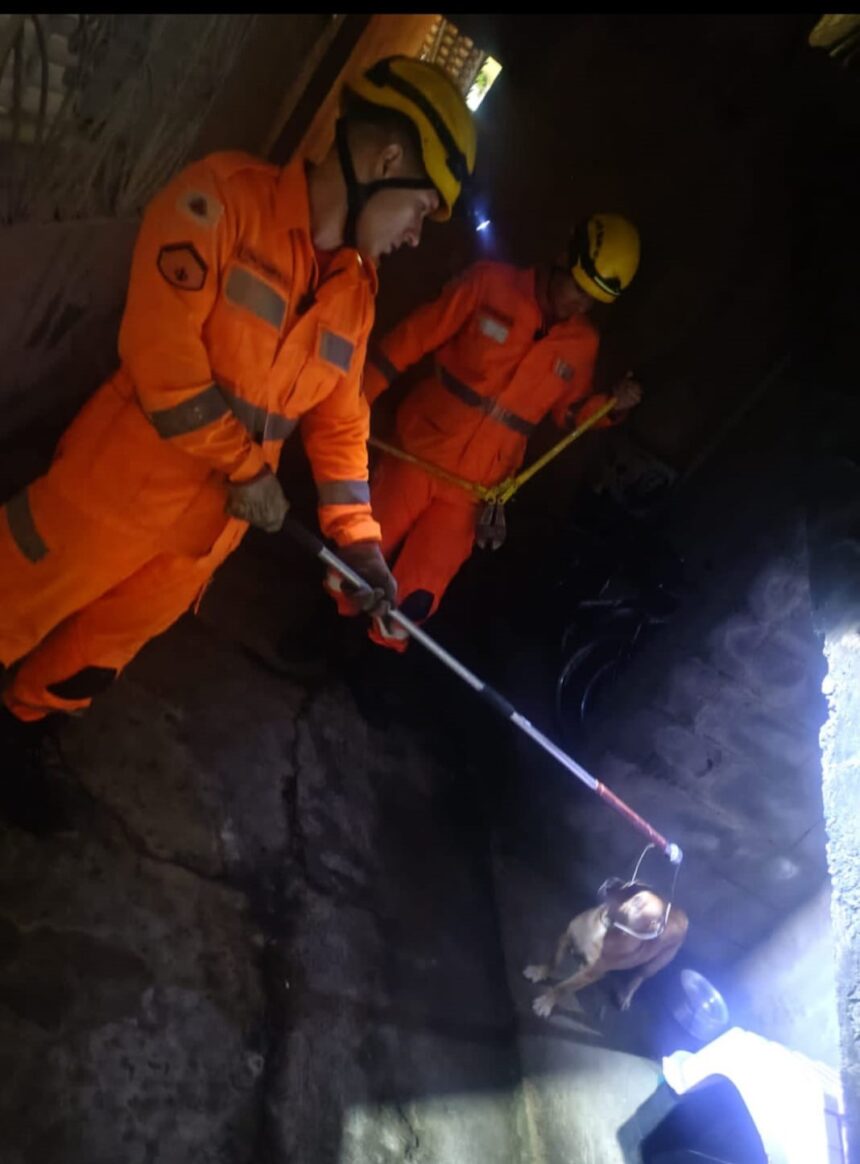 O Corpo de Bombeiros foi acionado na madrugada desta terça-feira (10), por volta das 4h30, para socorrer uma cadela, na rua Rio Casca, bairro Belmonte, em João Monlevade.