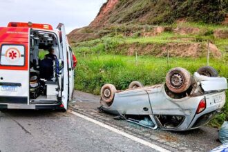 Carro capota na br-262 e deixa um ferido; Bombeiros voluntários e SAMU foram mobilizados