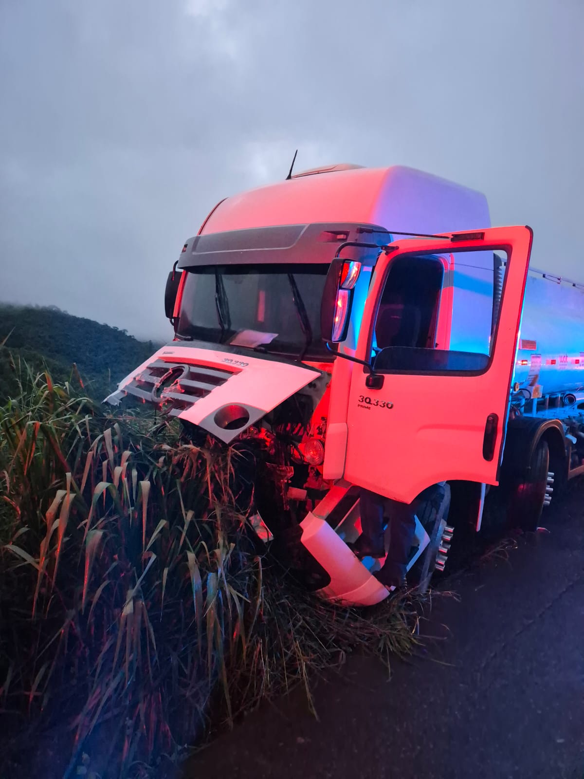 O motorista do caminhão-tanque não sofreu ferimentos físicos.