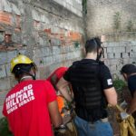 Ao chegarem ao endereço, as equipes confirmaram a existência do corpo em uma área de terra recentemente revolvida, o que levou ao isolamento imediato do perímetro para o trabalho da perícia técnica. Durante as diligências nas imediações, os policiais abordaram o responsável pelo imóvel, de 45 anos, e um homem de 32 anos.