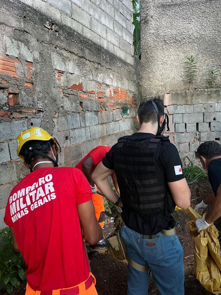 Segundo o relato recebido pelos militares, a vítima teria morrido após ser agredida durante uma briga motivada por entorpecentes e, em seguida, enterrada nos fundos da propriedade para ocultar o crime.