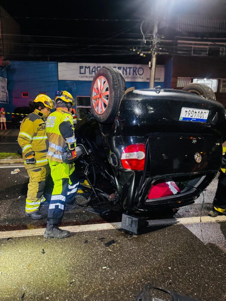 De acordo com o Corpo de Bombeiros, a equipe foi acionada por volta da meia-noite para atendimento de uma ocorrência de capotamento. No local, os militares encontraram um veículo VW Fox, de cor preta, capotado com as rodas para cima. Segundo a Polícia Militar, o acidente ocorreu após uma perseguição policial, quando o condutor teria perdido o controle da direção e capotado o veículo na via urbana.