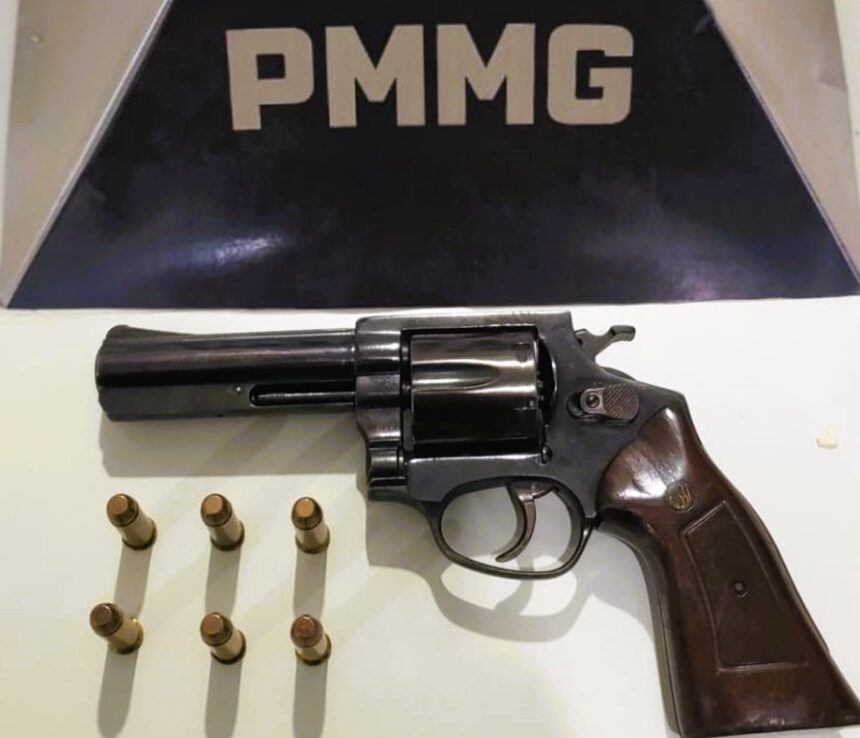 A Polícia Militar apreendeu um revólver calibre .38 e seis munições do mesmo calibre durante uma ocorrência registrada por volta de 0h, na Rua Padre Pedro Domingues, no centro de São Domingos do Prata.