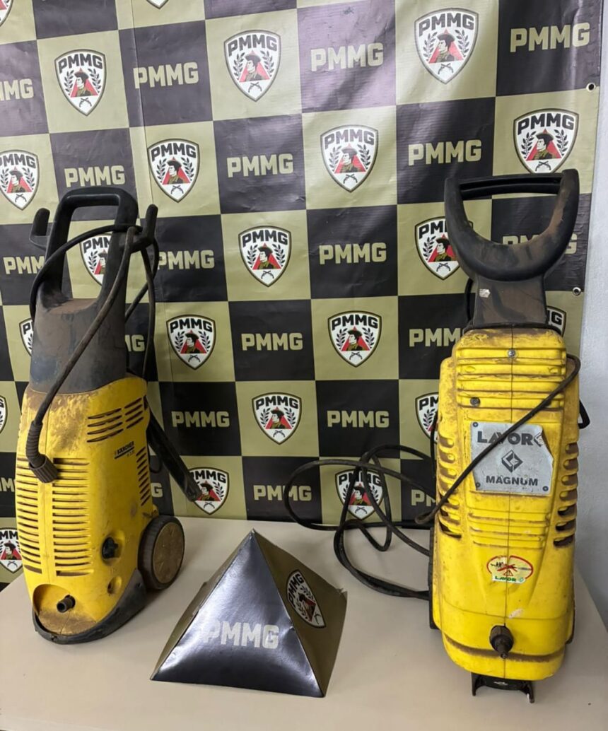 Ao chegarem ao endereço indicado, as equipes cercaram o imóvel e conseguiram abordar o suspeito no exato momento em que ele tentava subtrair duas máquinas de lavar de alta pressão.