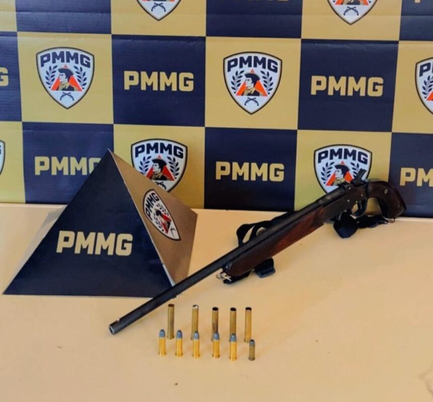 Em uma bolsa, os policiais encontraram uma arma de fogo do tipo garrucha, calibre .38, desmontada, além de munições de diferentes calibres.