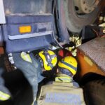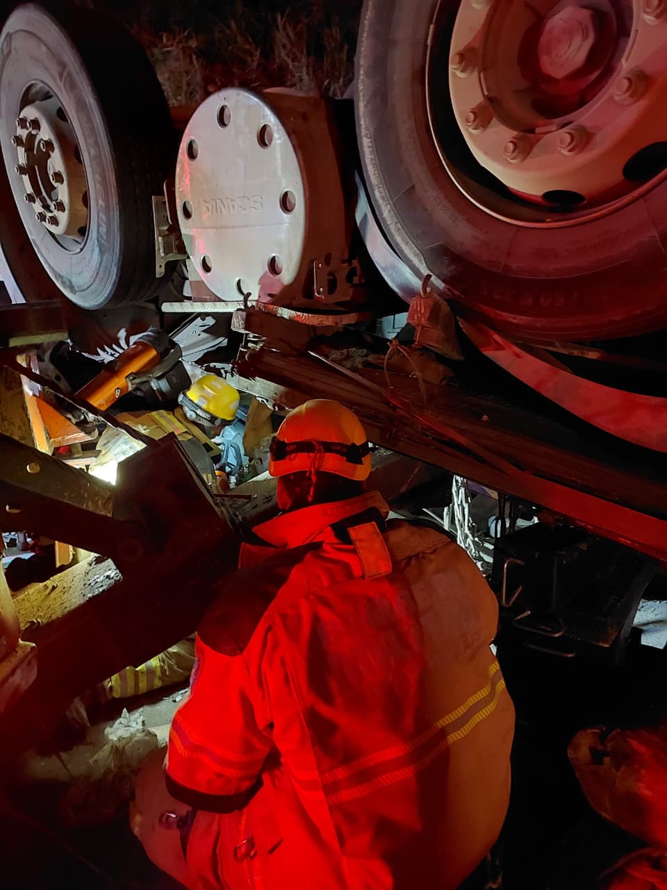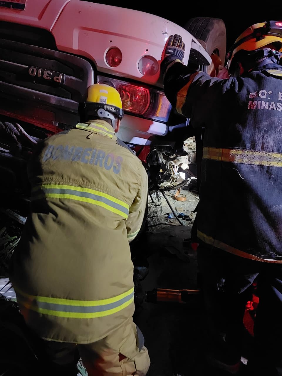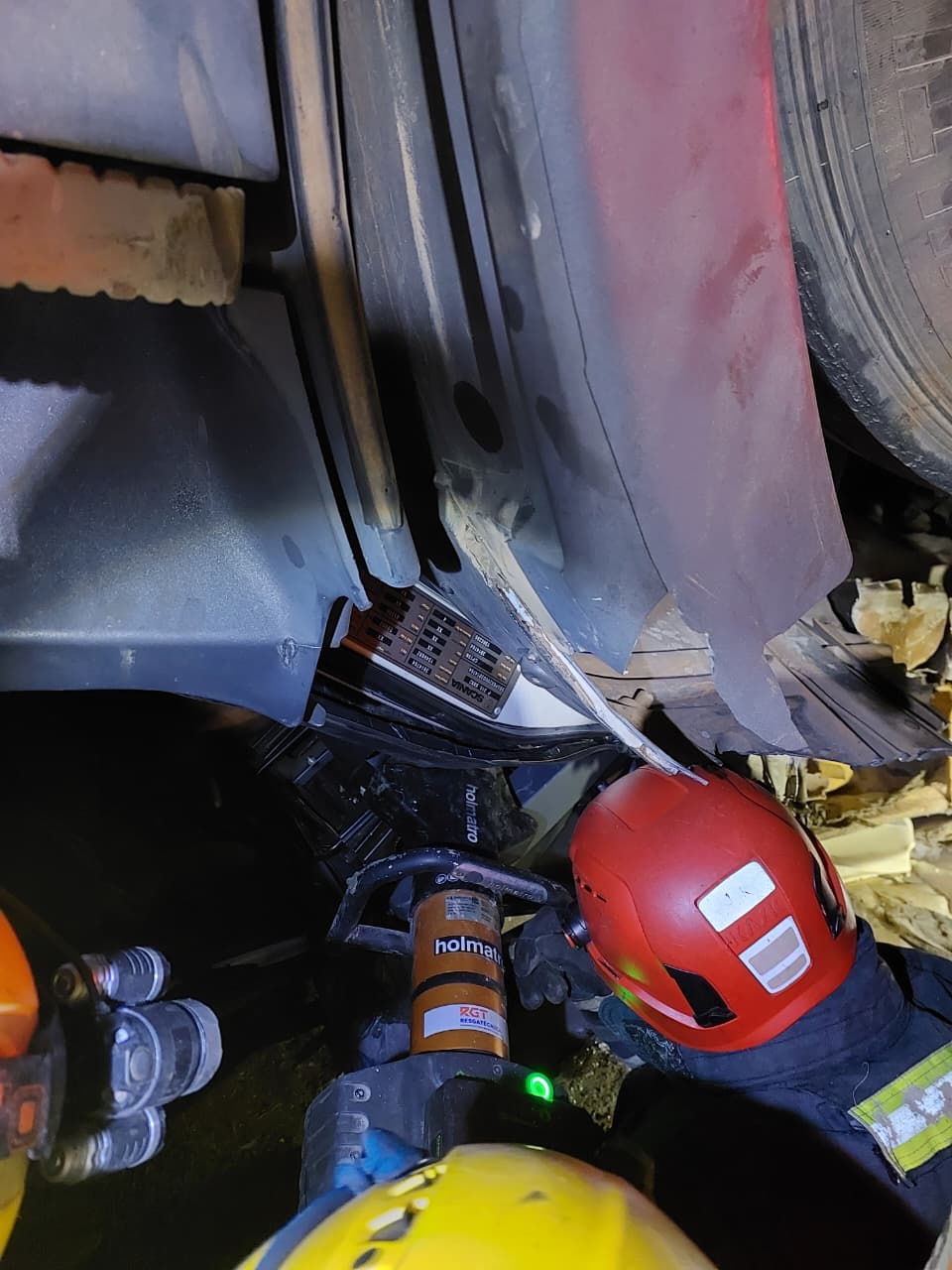O motorista foi encontrado com vida, mas a forte compressão da estrutura impedia o uso imediato de ferramentas hidráulicas de corte (desencarceradores).