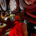 Sob orientação dos militares, o veículo foi levantado de forma controlada para aliviar a pressão sobre a cabine.