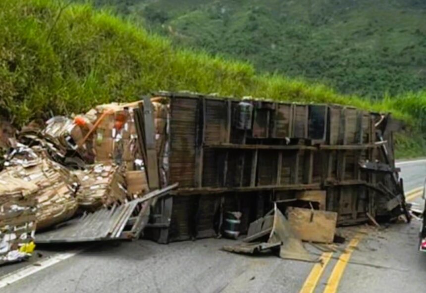 Um caminhão que trafegava na MGC-120, Km 456, estrada de Itabira à Nova Era, derramou uma carga de papelão prensado, após a carroceria desprender do chassi, na tarde desta terça-feira (14), próximo ao garimpo de Capoeirana.