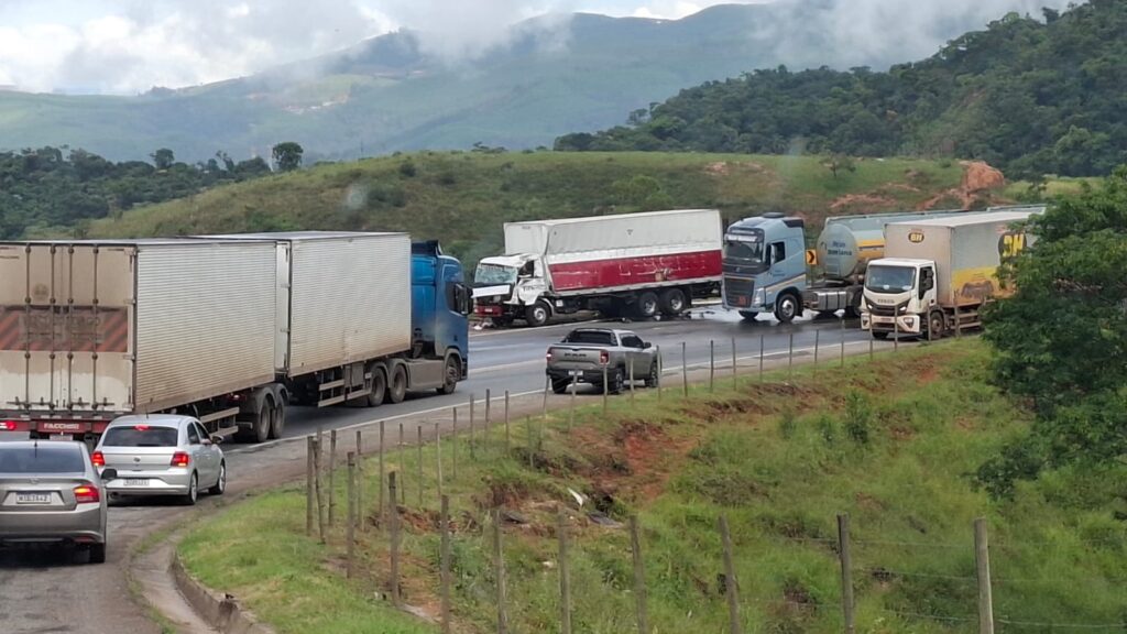 Dois acidentes envolvendo veículos de carga deixaram o trânsito interditado na BR-381, no trecho conhecido como Corte de Pedras, em João Monlevade, na manhã deste sábado (07).