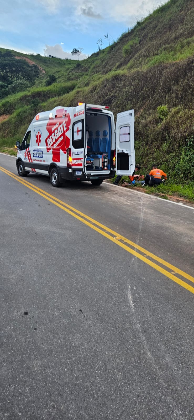 No local, os socorristas constataram que um jovem de 23 anos, residente em João Monlevade, perdeu o controle da motocicleta enquanto passeava, vindo a colidir contra um barranco.