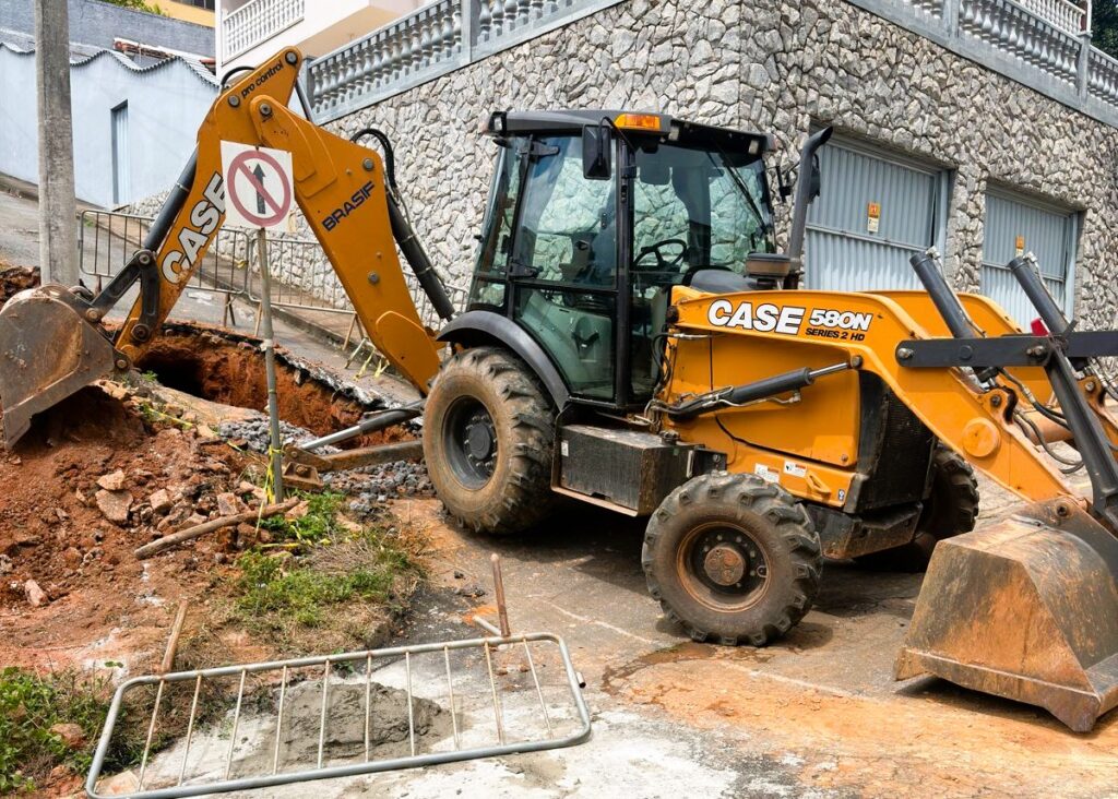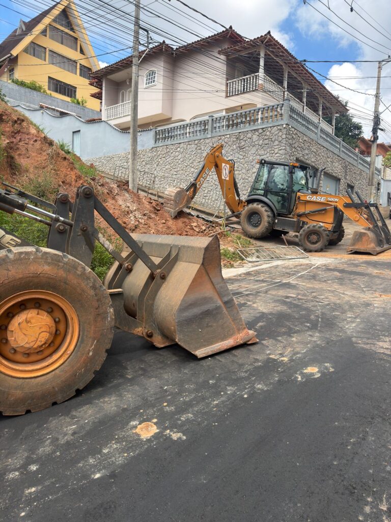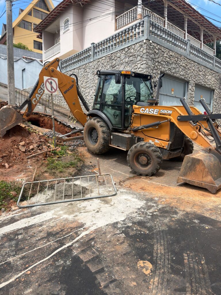 O Presidente da Câmara Municipal Fernando Linhares acompanha obra na Rua Coronel Fabriciano no Bairro Aclimação em João Monlevade/MG.