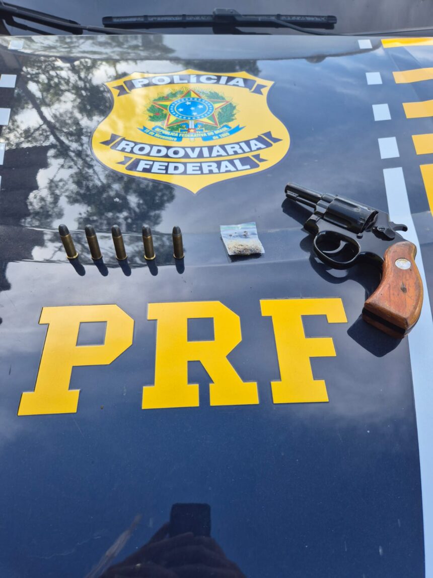 A Polícia Rodoviária Federal (PRF) apreendeu um revólver calibre .38 municiado e prendeu dois homens na tarde deste domingo (22), durante fiscalização no km 121 da BR-262, em Rio Casca (MG).